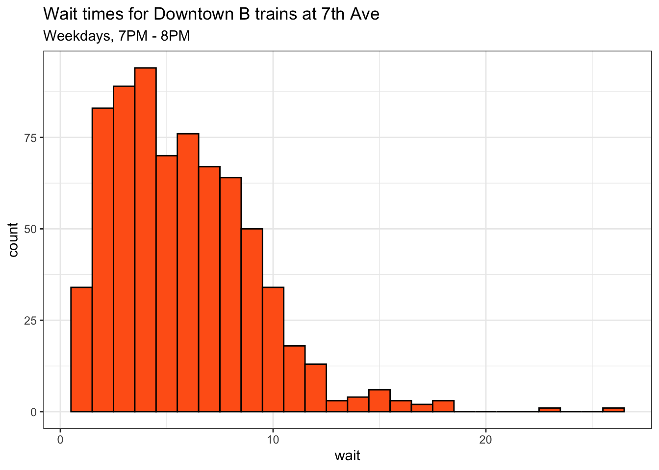 labs(title = "Wait times for Downtown B trains at 7th Ave",